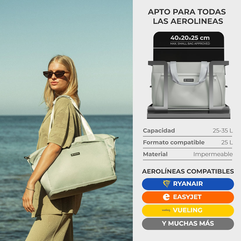 La bolsa de viaje expandible Numada Weekender W40 es la compañera perfecta para escapadas, deporte o uso diario. Su diseño compacto cumple con las medidas de equipaje de cabina de todas las aerolíneas, incluyendo el formato de 40x20x25 cm de Ryanair.